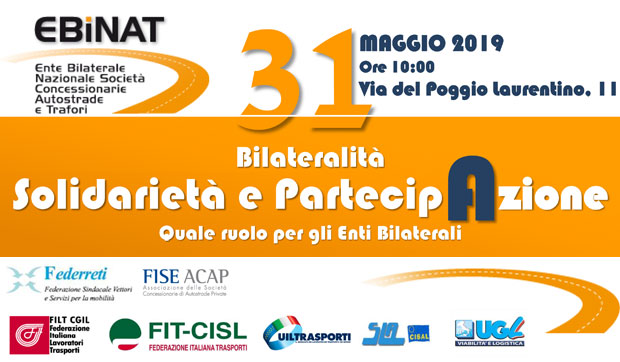 Autostrade, a Roma tavola rotonda EBiNAT “Bilateralità, solidarietà e partecipAzione” Roma, 31 maggio 2019